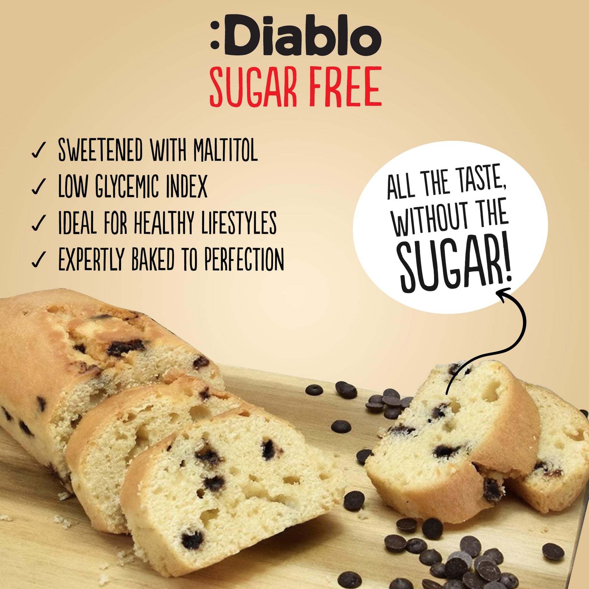 - SWEETENED WITH MALTITOL: Diablo cakes are sweetened with Maltitol for a smooth, balanced taste without added sugars. Enjoy them as a lighter alternative to tea cakes or any classic gluten free pastry, offering the same indulgent flavor with less sugar in every moist, fluffy slice.