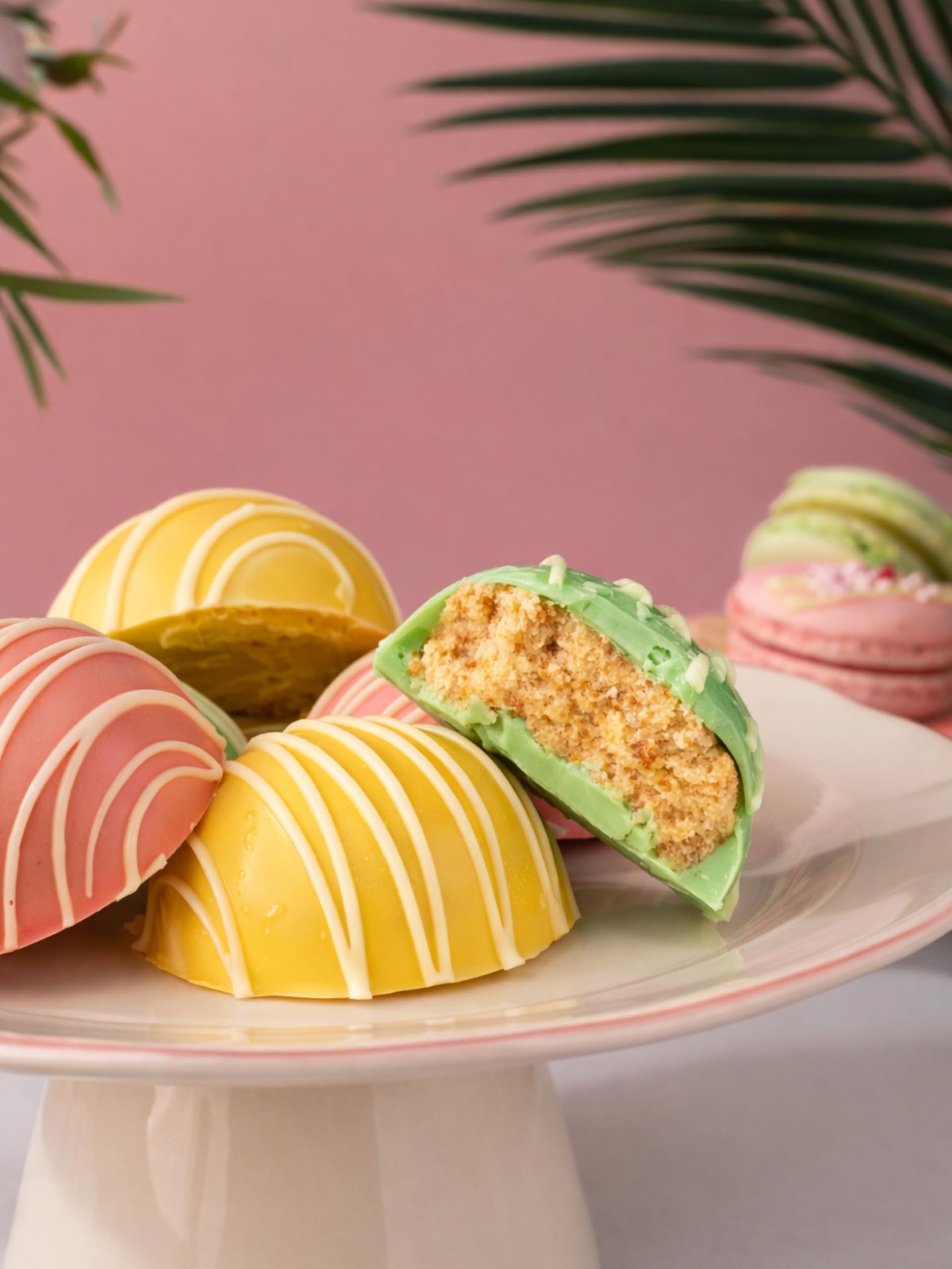Chocolate With White Chocolate: Cake Bites: Vanilla White Chocolate, Vanilla Dark Chocolate, Double Chocolate, Dark Chocolate. Ingredients: (Plain Sponge ((Sugar, Wheat Flour (with Calcium, Iron, Niacin, Thiamin), Dried Whole Egg, Wheat Starch, Raising Agents, (E450 Vii), (E501 Ii), (E500 Ii), (E341I), Emulsifiers (E475, E481, E475, E472b, E471, E481, E472e), Dried Egg White, Skimmed Milk Powder), Water, Rapeseed Oil (Rapeseed Oil, Anti Foaming Agent (E900)), Release Agent (Water, Vegetable Oil, Emulsifier (E476), Thickener (E903)), Chocolate Sponge (Sugar, Wheat Flour (with Calcium , Iron, Niacin, Thiamin), Dried Whole Egg, Wheat Starch, Fat Reduced Cocoa Powder, Raising Agents (E575, E501(ii), E450(i)), Emulsifiers (E475, E472b, E471, E481, E472e), Chocolate (Sugar, Cocoa Mass, Fat Reduced Cocoa Powder), Dried Egg White, Skimmed Milk Powder, Water, Rapeseed Oil (Rapeseed Oil, Anti Foaming Agent (E900), Release Agent (Water, Vegetable Oil (Non-hydrogenated Rapeseed Oil), Emulsifier (E476), Thickener (E903)),Plain Swiss Buttercream (Sugar, Butter (Milk)), Free Range Pasteurised Egg White, Margarine (Vegetable And Hydrogenated Vegetable Oil), Water, Salt, Emulsifier (E475), Flavourings, Colours (E160b, E100), Vanilla Mauritius (Flavouring (Water, (E1520), Caramel Sugar Syrup, Thickener (E415), Acidity Regulator (Citric Acid), Preservative (E202), Glycerol (E442)), White Chocolate Chips (Sugar, Cocoa Butter, Whole Milk Powder, Emulsifier (Lecithin (Soya), Natural Vanilla Flavouring), Dark Couverture Chocolate (Cocoa Mass, Sugar, Cocoa Butter, Emulsifier (Soya), Natural Vanilla Flavouring). Dark Couverture Chocolate (Cocoa Mass, Sugar, Cocoa Butter, Emulsifier (Soya), Natural Vanilla Flavouring)).