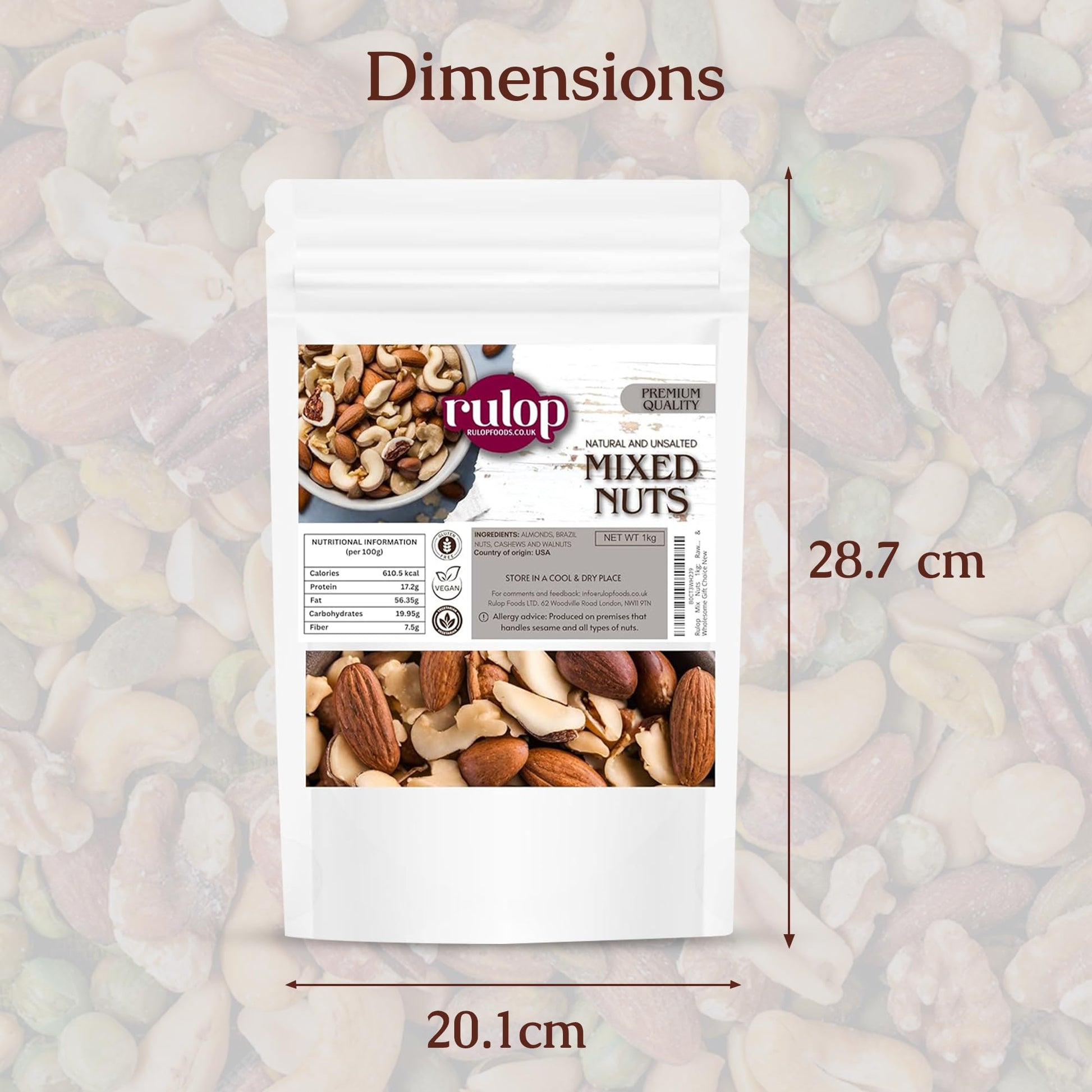 Rulop Mix Nuts 1kg: Raw & Unsalted Cashews, Almonds, Walnuts, Brazil Nuts - Nutritious Vegan, Keto, Vegetarian Snack Mix, Bulk Diet Treat & Wholesome Gift Choice